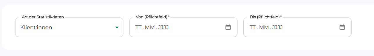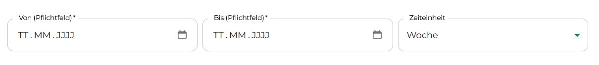 Um die Statistik zu sehen, muss erst der Zeitraum eingestellt werden. Hier können keine Daten die in der Zukuft liegen genommen werden, jedoch ist die Statistik retrospektiv möglich. Anschließend wird hier noch die Zeiteinheit ausgewählt (Tag, Woche oder Monat).