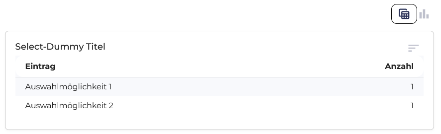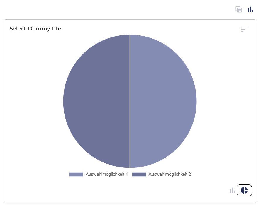 Die Daten werden in Form von Balkendiagrammen angezeigt, dies kann durch das Klicken auf das Kreisdiagramm-Symbol (Änderung zum Kreisdiagramm) bzw. auf das Taschenrechnersymbol (Änderung zur Tabelle) neben den Balken entsprechend geändert werden.